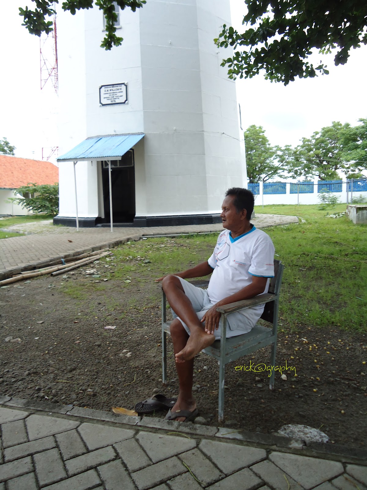 Mercu Suar itu berada di dalam area berpagar tembok, yang dikelilingi oleh mess