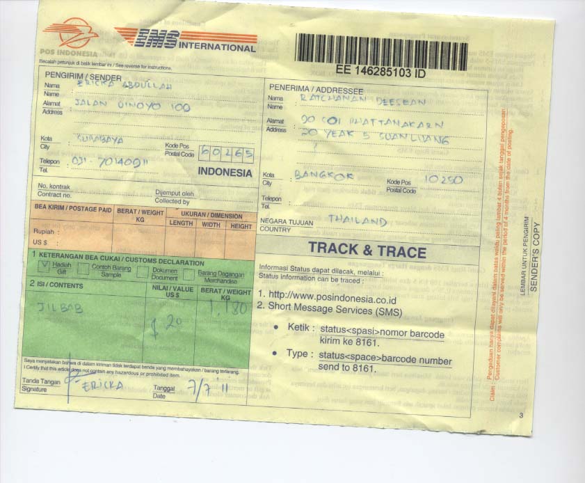 | EMS ke Bangkok Thailand |