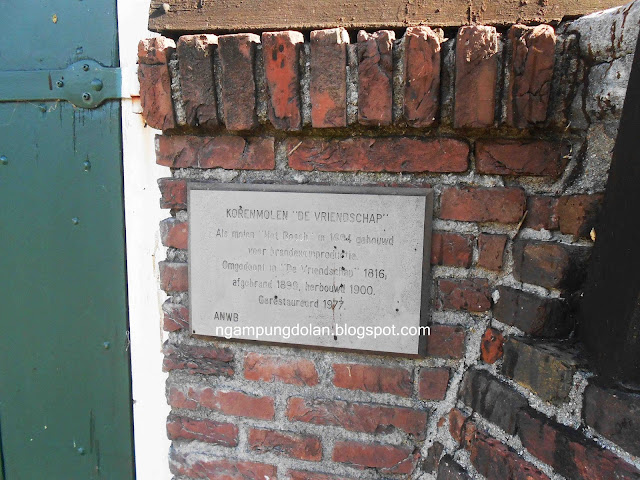 Menurut plakat yang tertera di kincir angin ini, dibangun kira-kira di tahun 1600an, digunakan sebagai tempat produksi minuman anggur .. wah untuk lengkapnya saya perlu ke Zaandam deh sepertinya, biar tahu lebih banyak tentang fungsi kincir angin :)