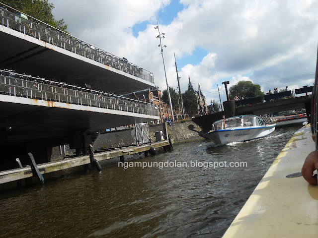 Tips-nya berkelilinglah mencari agen yang harganya miring he he, memang lokasinya tidak di tempat utama, tapi tur yang ditawarkan sama kok. Kita akan diajak berkeliling canal-canal di Amsterdam kurang lebih 1 jam. Kita disuguhi pemandangan unik yang tidak kita temui di Indonesia, seperti deretan rumah-rumah khas Belanda, sudut-sudut kota yang terlihat romantis dengan bunga-bunga bermekaran, ribuan sepeda yang terparkir di salah satu pusat parkir, rumah diatas air, hingga bangunan-bangunan futuristik di Kota Amsterdam.